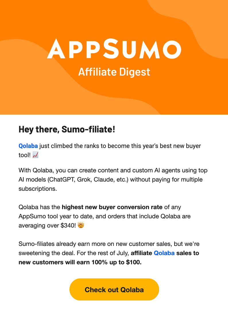 - If you hit “Monster Deal” status (what we lovingly call heavy-hitting performers), you might even get a shoutout from our founder, Noah Kagan, in his newsletter (100K+ subscribers).