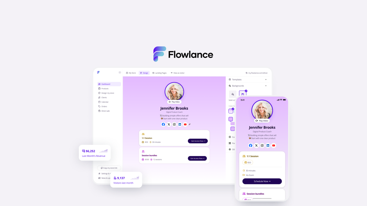 Flowlance turns clunky sites, sketchy payments, and “where do I even start?” vibes into a plug-and-play storefront so you can sell digital products, coaching, and services in minutes - no code required.