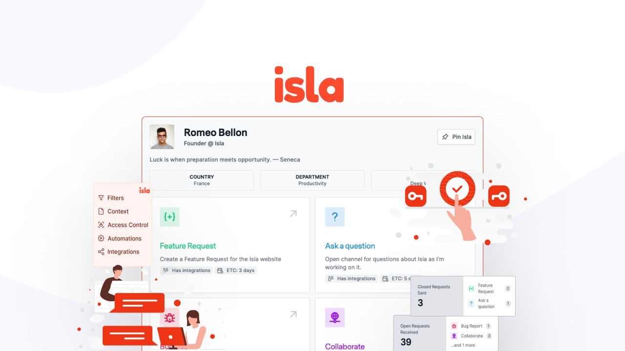 Maintaining long-lasting concentration can be challenging when solicitations and requests come across multiple channels. With Isla, all incoming and outgoing requests are now centralized in one place.