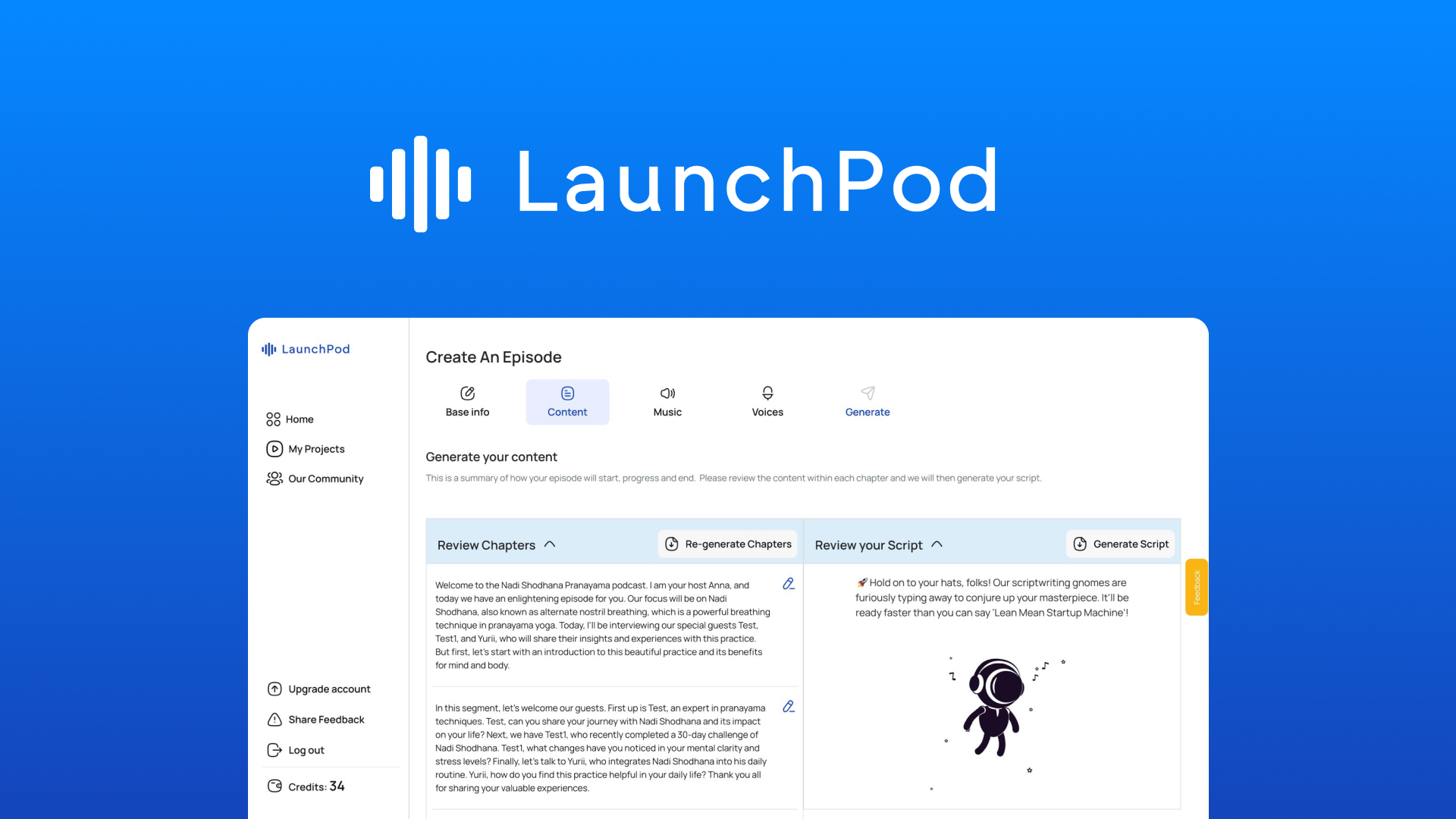 Thanks to LaunchPod AI, you’ll be able to generate engaging scripts with AI—or simply upload your own.