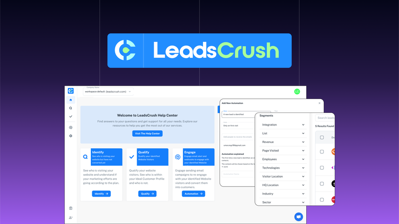 LeadsCrush tracks visitor footprints and matches them with extensive databases to gather company details such as revenue, employee count, and key personnel email addresses. While I haven't used the Leadinfo application, there may be some similarities since we focus on the same niche.