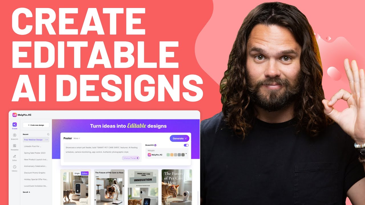 Instead of forcing users to search through countless static templates, we offer AI templates that adapt to any scenario through layouts and modifiable prompts. Our Brand Kit and Enhance Prompt features allow users to create consistent, professional designs without requiring design skills or AI expertise.