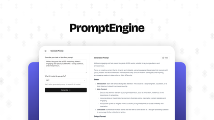 PromptEngine solves the problem of wasting time crafting effective AI prompts. Many users struggle to turn rough ideas into prompts that actually get results. PromptEngine makes this easy by instantly transforming simple instructions into professional, high-quality prompts. What sets it apart is its simplicity—no clutter, no learning curve—and its focus on speed, consistency, and usability. Features like prompt history and the GPT-4o image prompt builder make it a practical, everyday tool for anyone working with AI.