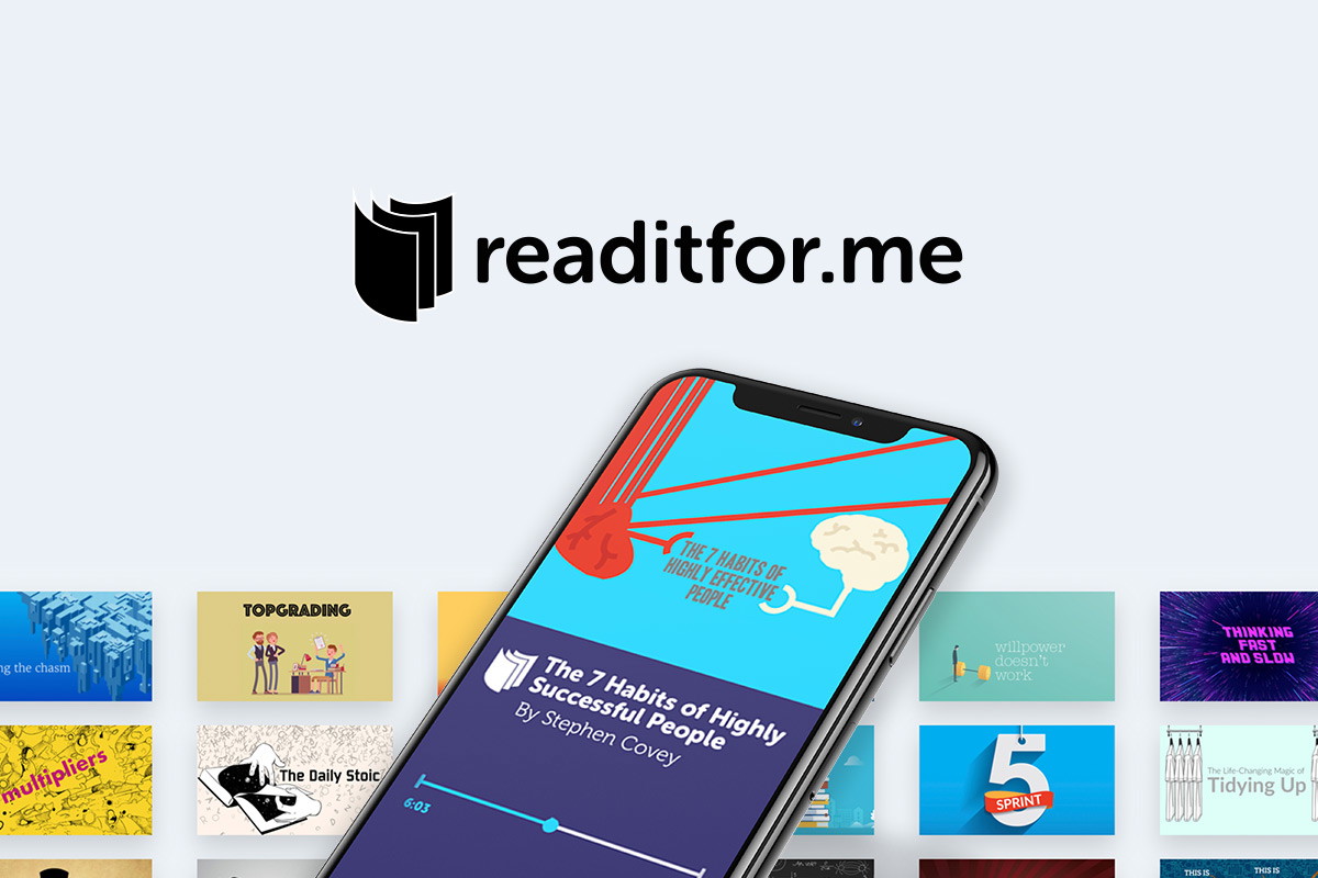 Readitfor.me is a platform offering 12-minute video, audio, and text summaries of the most important business and personal development books.
