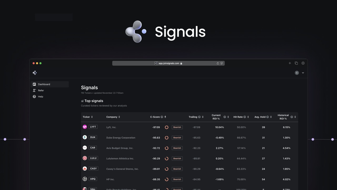 Stop second-guessing your trades. With Signals, you’ll have AI-powered insights and reliable data to make smarter, faster investment decisions.