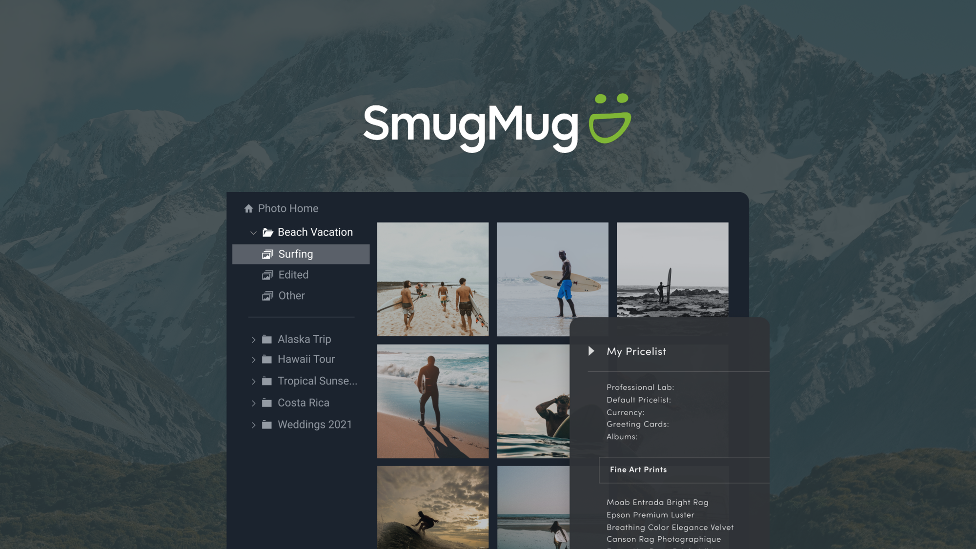 SmugMug is a platform where photographers can build websites to display photos and sell them.