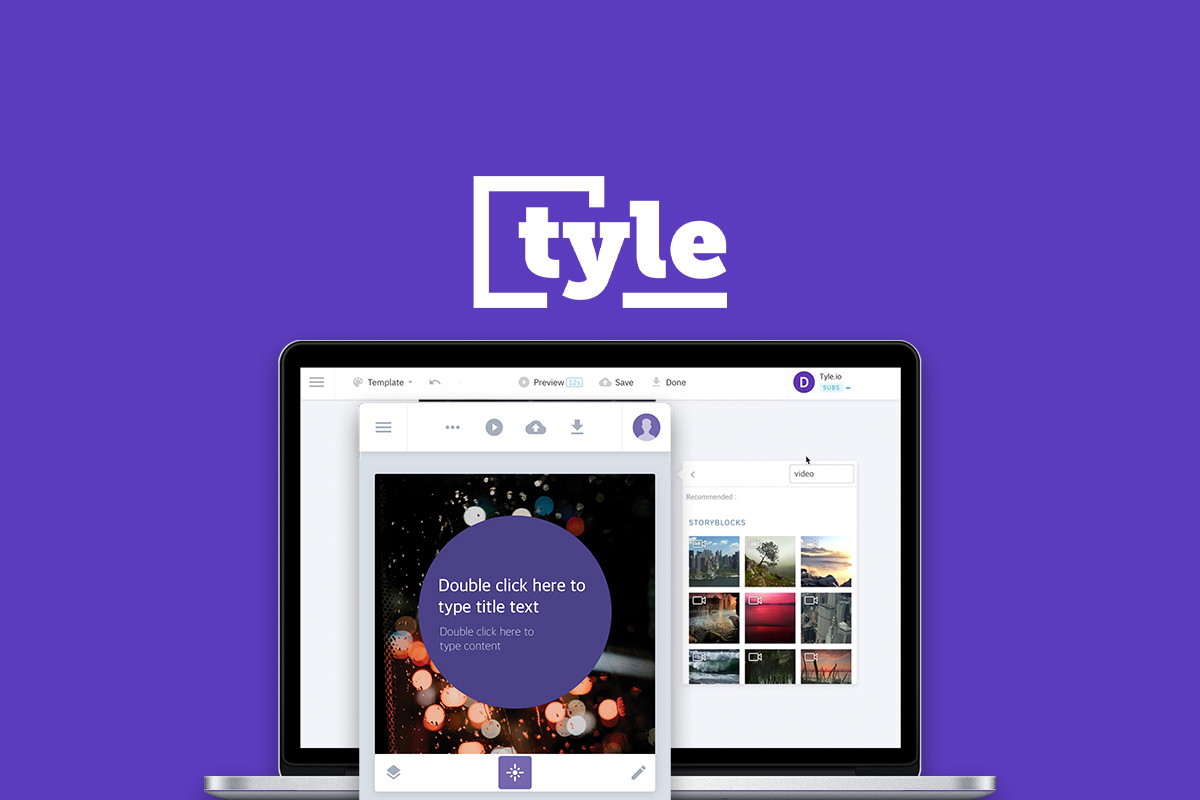Tyle makes it easy to get started creating videos with custom templates, stock photos and video, and a smart editor that puts it all together.